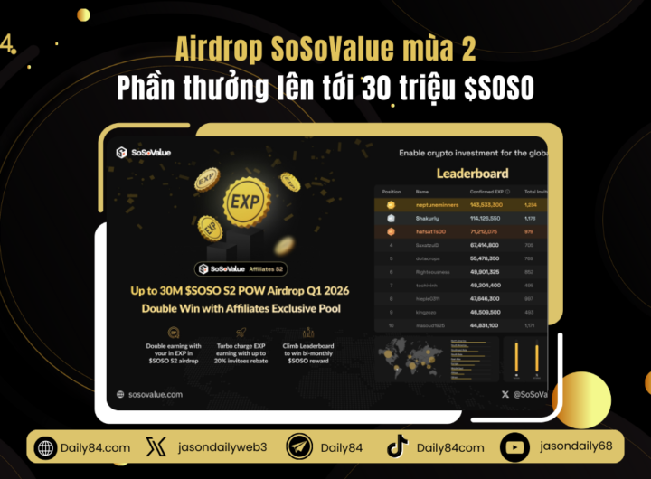 Chương trình airdrop mùa 2 của SoSoValue đang diễn ra với tổng thưởng lên tới 30 triệu...