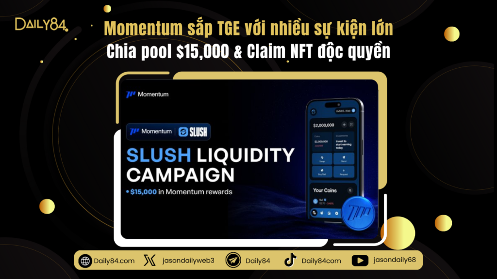Tham gia Momentum x Slush Wallet – chỉ cần stake tối thiểu $10 để có cơ hội chia sẻ pool thưởng trị giá $15,000!